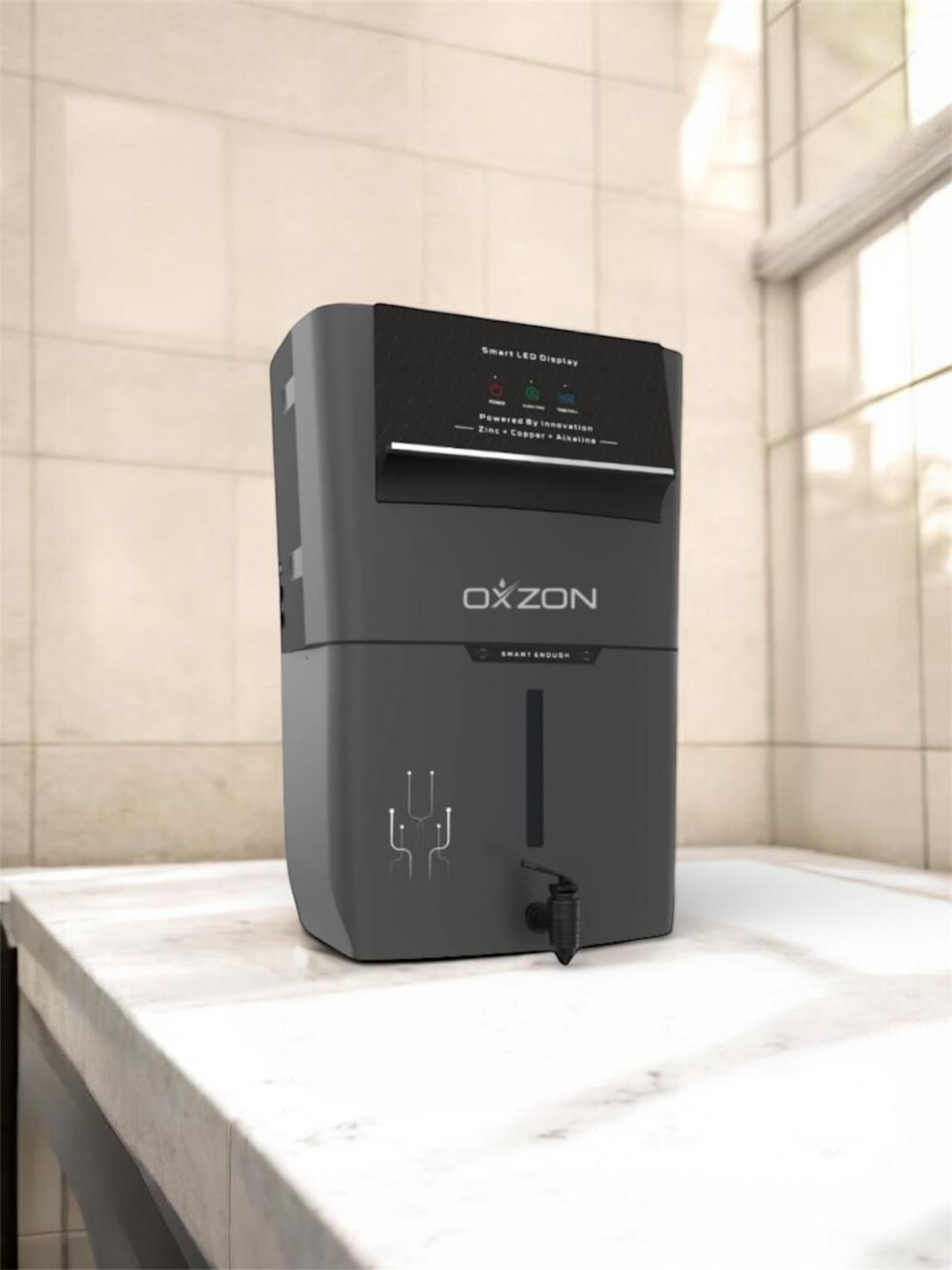 * AROMA OXZON An ISO 9001:2015 Certified Company Presents a Fully Automatic RO+ALKALINEB12+COPPER+ZINC+TDS Controller, Multi Stages Purification System.